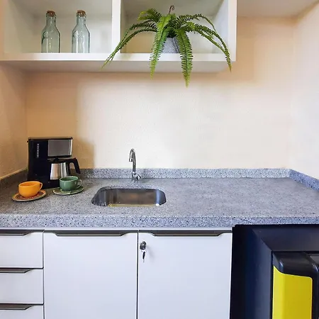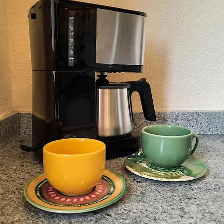 Denne ferielejlighed er udstyret med et fuldt udstyret køkken til dem, som ønsker selvbetjening.